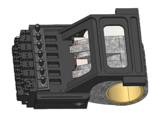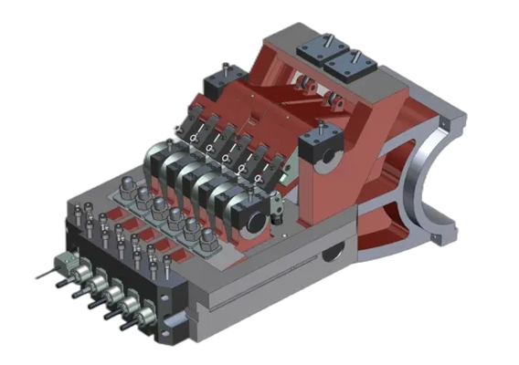 夹紧轴采用独立的夹紧开口结构。夹具可以自由膨胀、收缩、打开和夹紧由凸轮驱动的材料。可实现卡箍开和压球,满足各种异形件成型的需要。